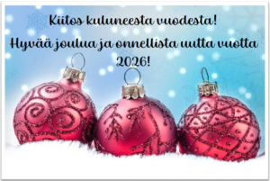 Toimiston väki lomailee 22.12.2025 alkaen. Takaisin sorvin äärelle palaillaan viimeistään 7.1.2026.